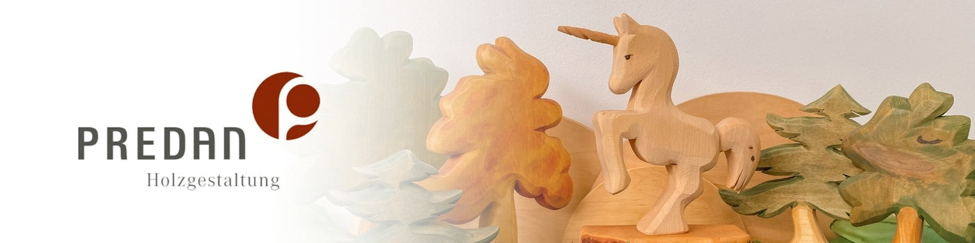Georg Predan founded Predan Holzgestaltung in 1972 and has since designed a large variety of wooden animals, trees and shrubs as well as people and fairy-tale figures. Every manufacturing step that turns a piece of timber into a wooden toy is made by hand - from the moment the timber arrives until the finished products leave the workshop in Schwäbisch Gmünd, Germany.