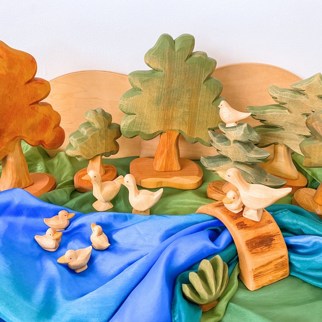 Georg Predan and his team focus on enhancing and preserving the natural characteristics of the wood and its grain by sanding, polishing and oiling each piece with a lot of love and care. When you look at Predan Wooden Toys, you may notice the large range of differently coloured figurines. Georg and his team use more than 20 different kinds of native and locally grown timber, mainly hardwood, to create their beautiful figurines. The timber from the different trees is responsible for the different colours - Sycamore Maple trees are known for their white timber, Yew trees for their orange, Staghorn Sumac for their green and Elm trees for their brown timber.