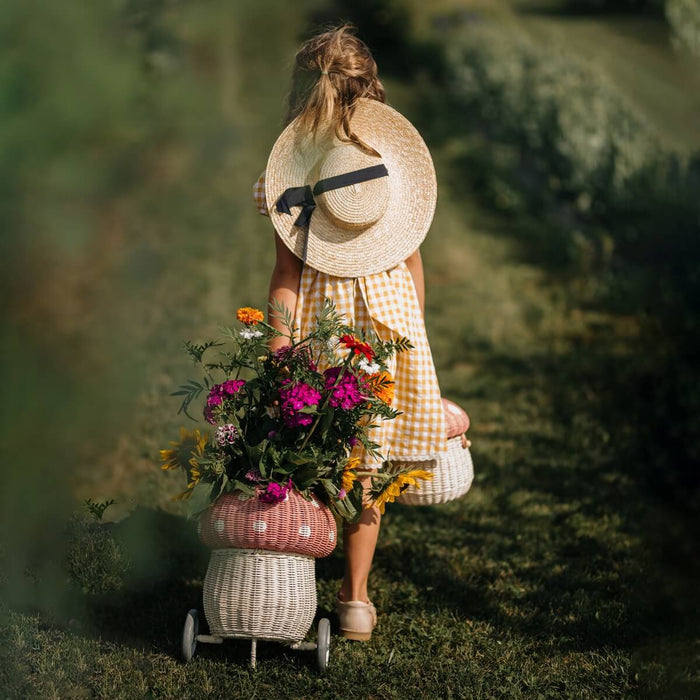 Brimming with all the features that make our Classic Original Luggy such a hit, this handwoven rattan wheeled basket is ideal for storing and toting around prized possessions! The Mushroom Luggy hits just the right notes of vintage and quirky and makes a beautiful addition to any woodland-themed nursery or bedroom. This Luggy is designed to roam wherever your child may go from the beach to the playground and everywhere in between.