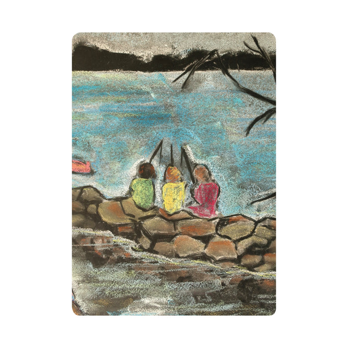 Chalkboard Art Cards - Children Fishing, pack of 5 cards