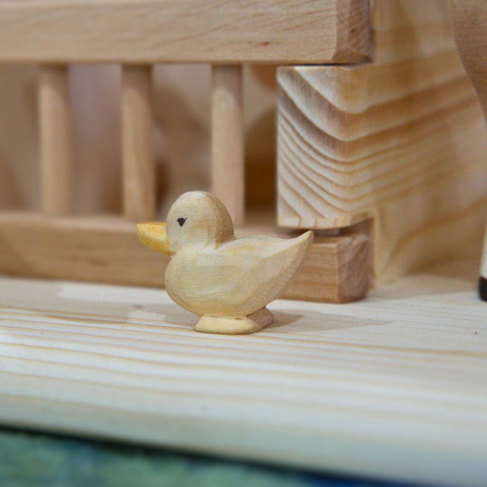 This duckling is so cute. Almost double the size of the ostheimer chick, so a little easier for tiny hands to hold and play with