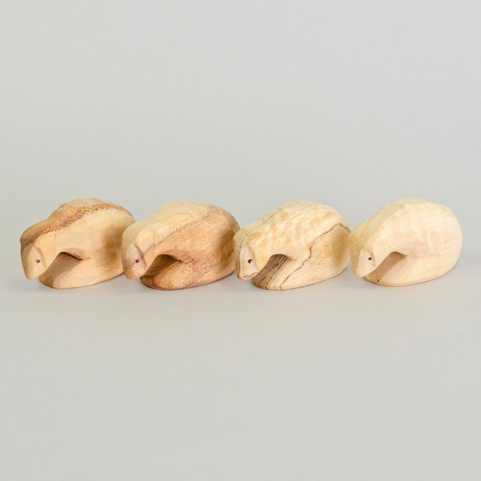 Materials: Each figure is made from a single piece of European solid wood with varying grains and colours such as Sycamore Maple, Yew, Staghorn Sumac, and Elm - 20 native varieties in total - all sustainably harvested from local forestry