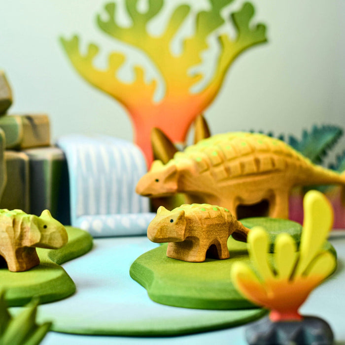 BumbuToys Wooden Dinosaurs - Ankylosaurus - Set of 2