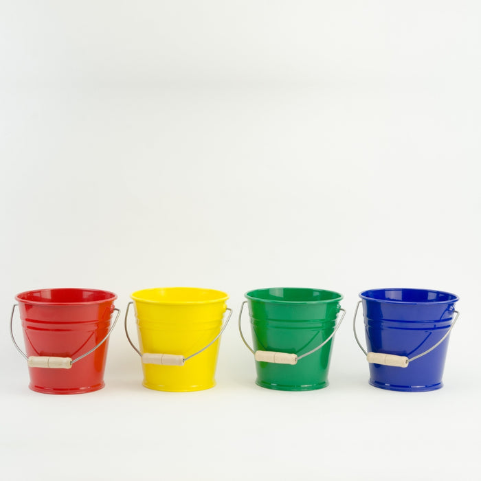 I bought two of the Glueckskaefer Metal Buckets for my kids (2 & 4 yrs old) and they absolutely love them! We have the green and the blue and the colours are so vibrant and beautiful. Very durable! My kids play indoors and outdoors with them.