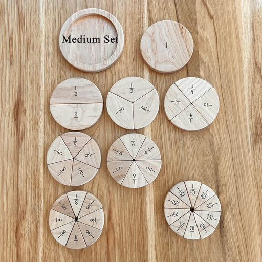 Smooth, solid wedges for learning all about fractions. Create whole numbers from the different parts. Discuss the numerator and denominator for eac...