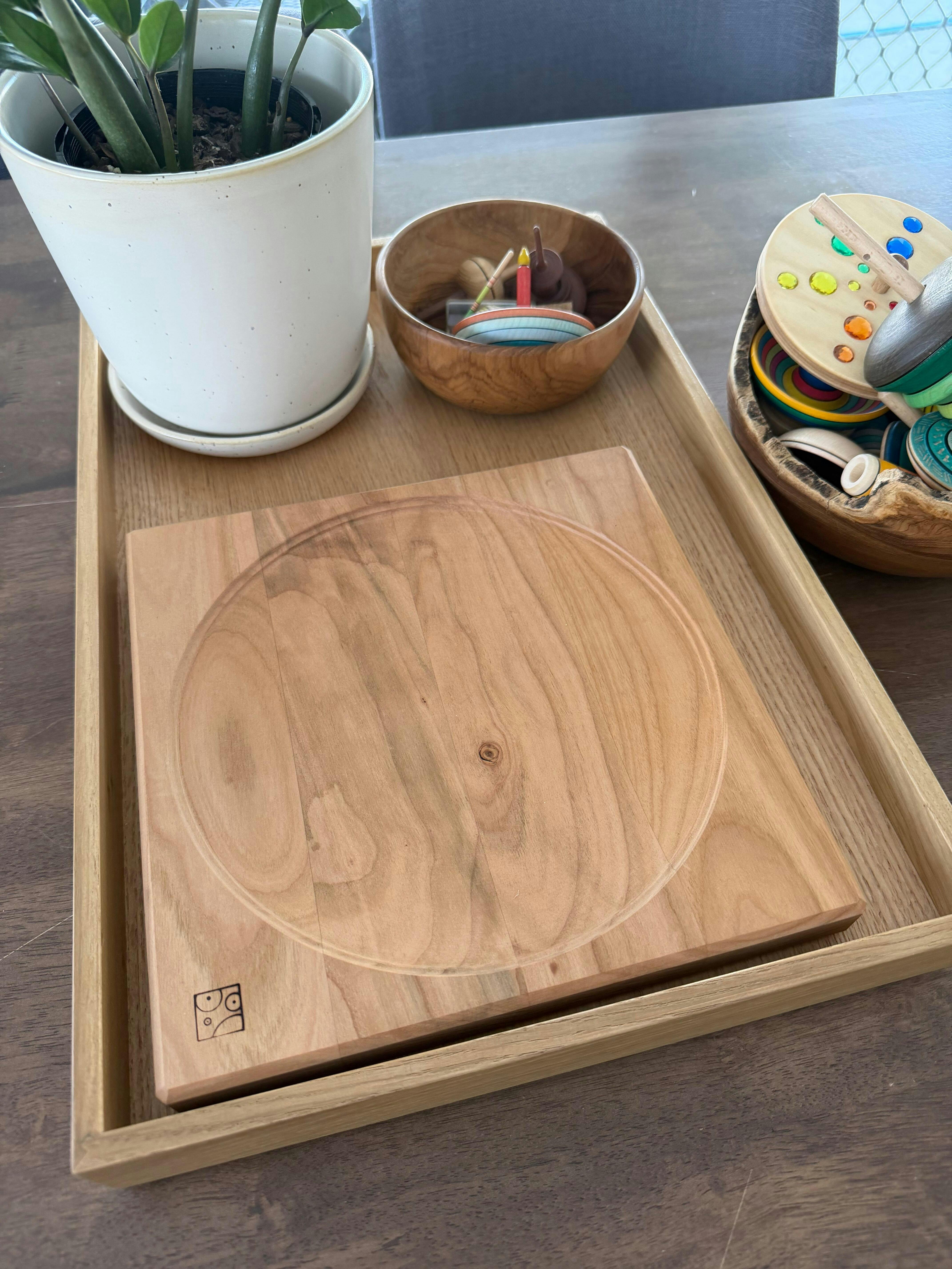 NOTE: Each Mader Wooden Plate is unique, colour and grain patterns may vary - a true masterpiece of nature. Spinning tops can be ordered separately.