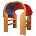 A complete playhouse doll corner or cubby for home or kindergarten includes two shelf stands and two wooden arches. It is made of solid oiled linden wood with an adjustable bench height. and lower shelf. Stable and sturdy for school settings.