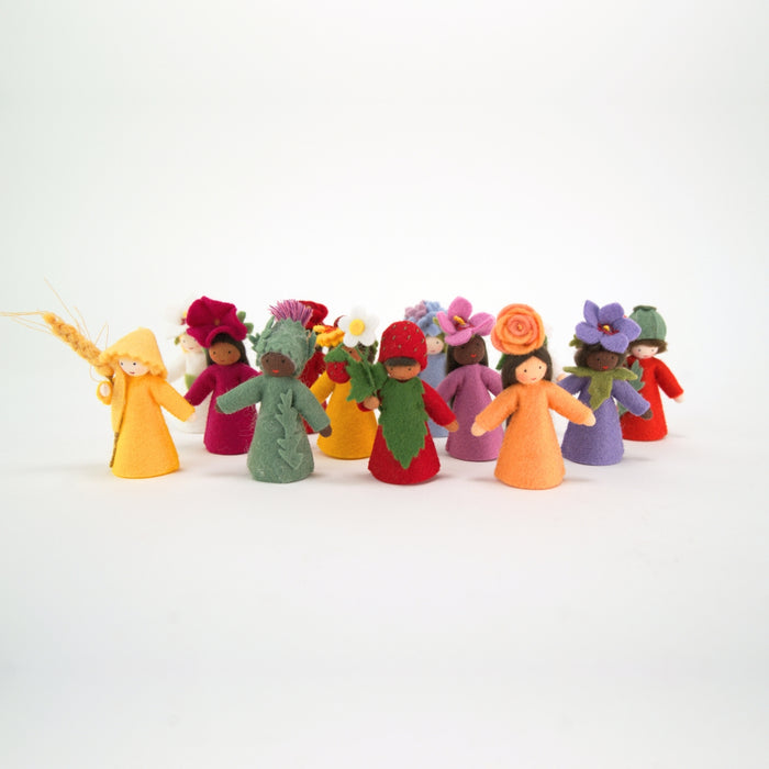 Ambrosius dolls are lovingly made in Transylvania, Romania, released as four seasonal collections each year, featuring a range of beautiful, eco-friendly, handmade fairy dolls, each inspired by a particular flower or fruit of the season. Ambrosius supports mothers with young children, retirees and people with disabilities by offering them working from home opportunities. Giving back and helping the ones in need is part of the Ambrosius story, and part of their profits are donated to the local Waldorf School and also to educational institutions in some of Transylvania's poorer villages. Learn more about Ambrosius...