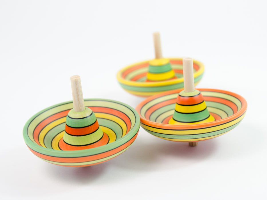 The Mader Sombrero Spinning Top Summer from Oskar's Wooden Ark is a very wide, cantilevered model of fingertop that will instantly remind you of the very famous Mexican hats called sombrero.