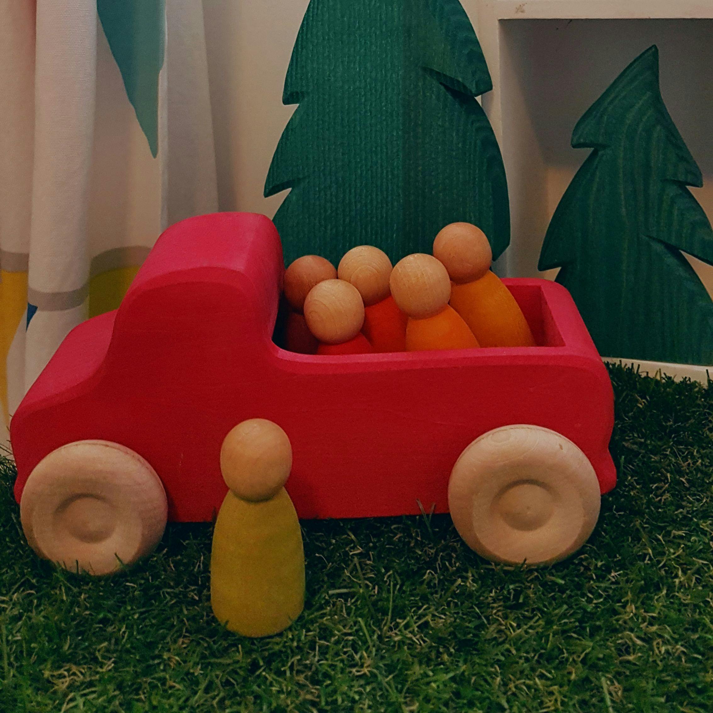 Perfect for small children and can be used outdoors. The truck also pairs beautifully with our "Grimm's Rainbow Friends".