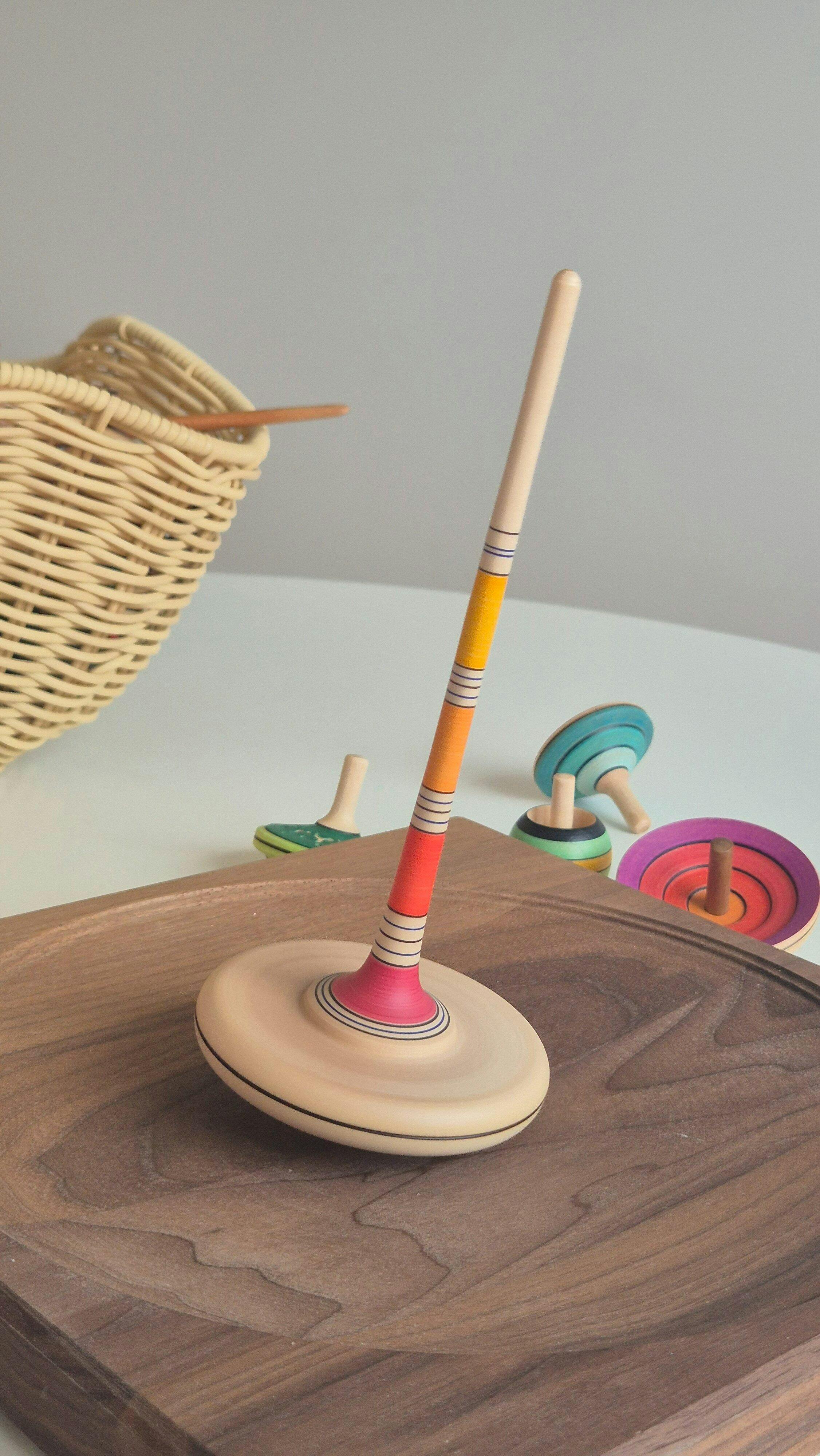 The Mader Arabella Spinning Top from Oskar's Wooden Ark is gorgeous, versatile and simply elegant. It can be used as a finger- or two-hand top.