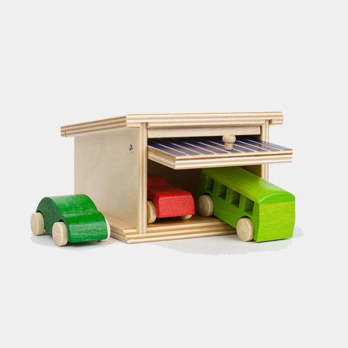 The Beck Garage with Door is perfect for pretend and small world play. It features a tiltable garage door and available space for 2 miniature vehicles.