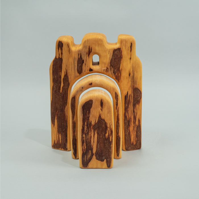 The Bikeho Knights Hall was designed with the Waldorf principles in mind, handmade from only the most natural of materials and finished with the characteristic soft rounded edges of Waldorf toys.