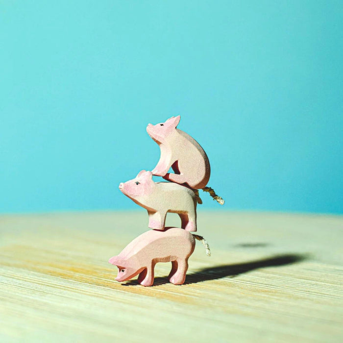 BumbuToys Wooden Farm Animal - Piglet - Sitting
