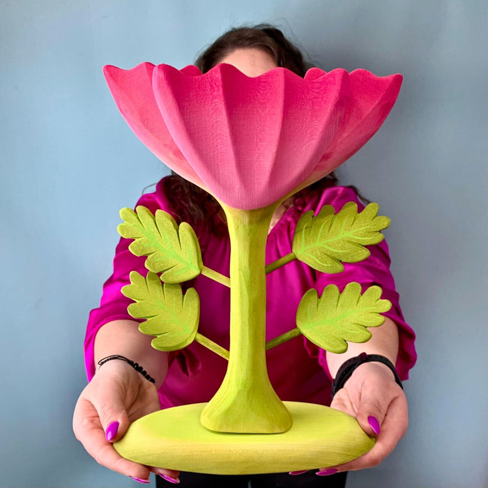 BumbuToys Wooden Plant Figure - Flower - Large, Pink
