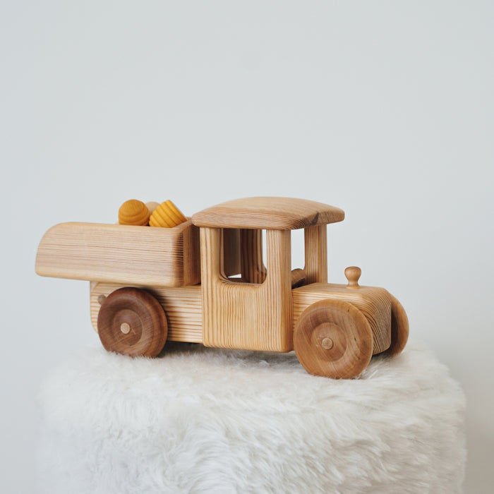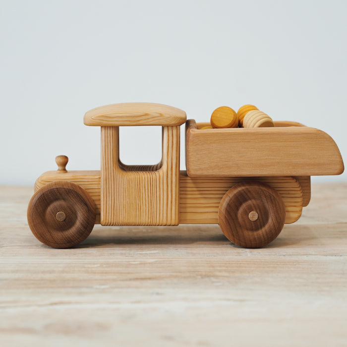 The Telleby Debresk Big Tip Truck will have kids hauling around "heavy loads" in no time. Its tipping bed lets them transport smaller toys and wooden toy truck accessories with ease and have a ton of fun!