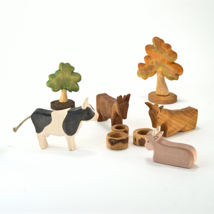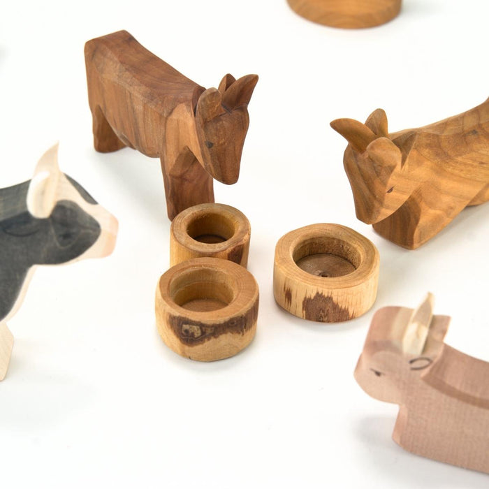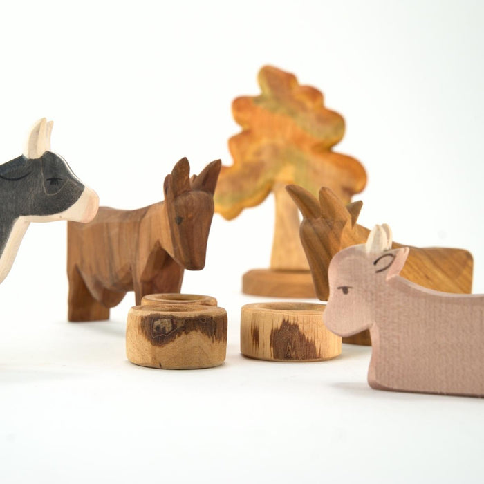 The Drei Blatter Small Feeding Trough from Oskar's Wooden Ark is perfect for wooden farm animals and other similarly-sized animal figures.
