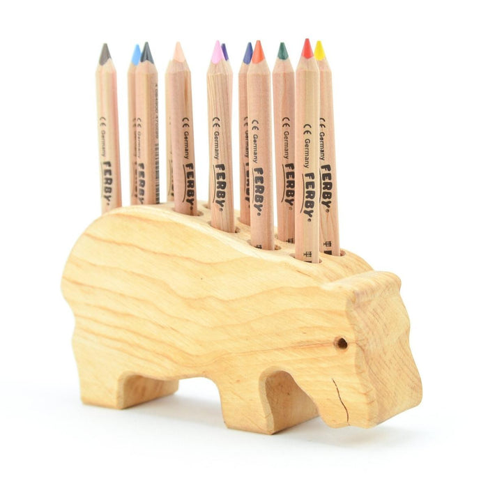 The Drei Blatter Wooden Pencil Holder Hippo keeps your pencils all neat, tidy and clean. And did you know children's scissors can also fit in the holes?