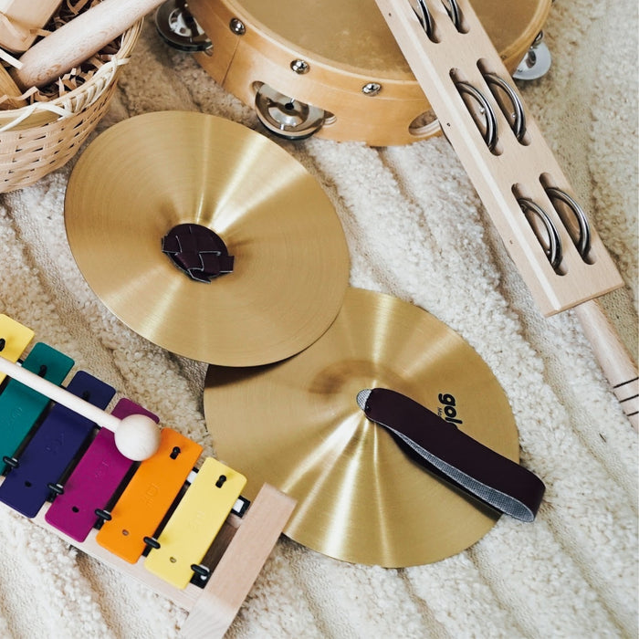 The Goldon Pair of Brass Cymbals is one to surely bring a smile to your child's face with its ease of play and bright, crashing sound.