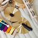Made out of brass which is perfect for beginners and independent play, and features leather handles for easy handling.