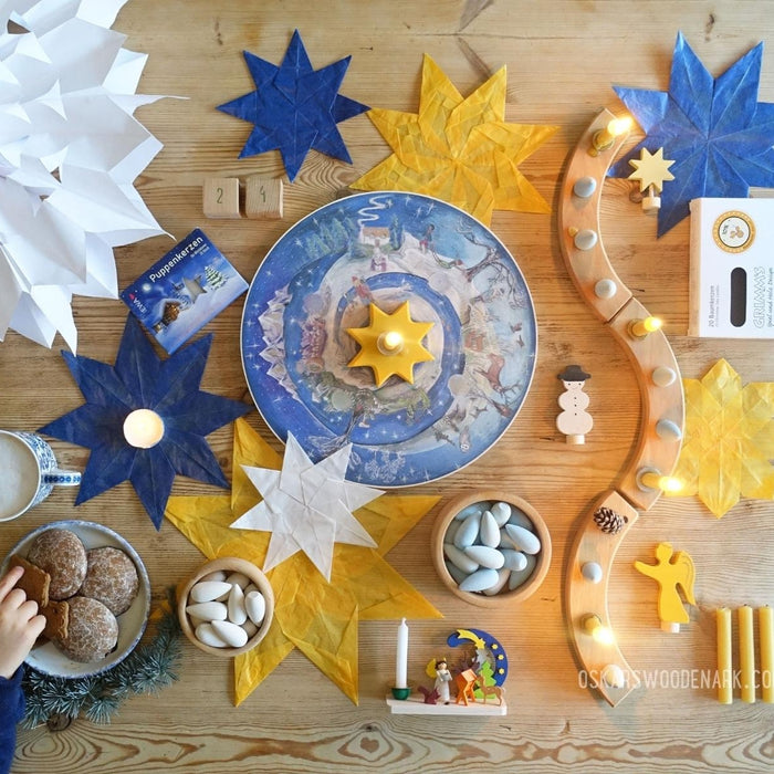 They fit both Grimm's and Gluckskafer candle holders, celebration rings, and advent spirals.
