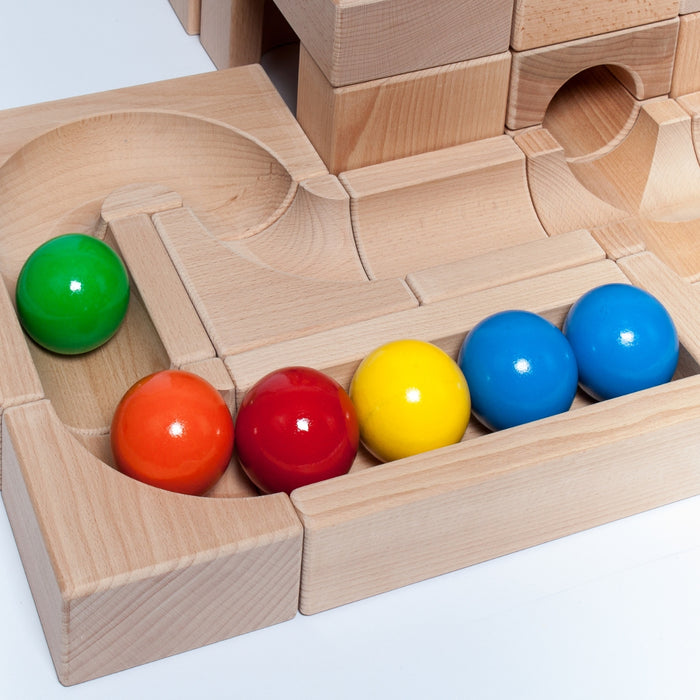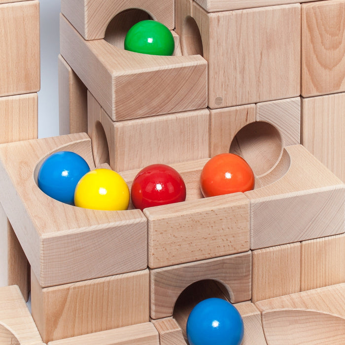 All building components included in this set are meticulously handmade from steam-treated wood for extra durability and stability. The balls, also crafted from wood, are beautifully colour-glazed.