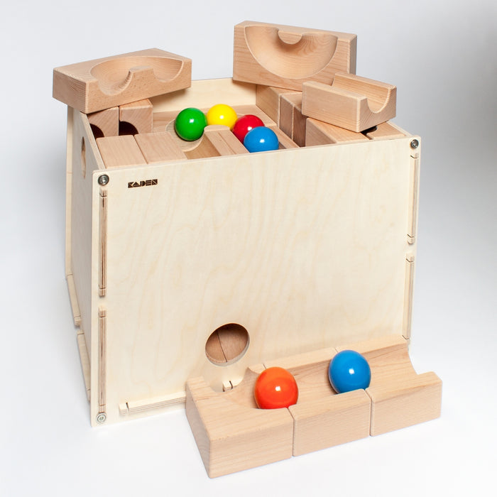 The KADEN Marble Run XL "Classic in Box" can be fully combined with other Size XL KADEN Marble Runs: