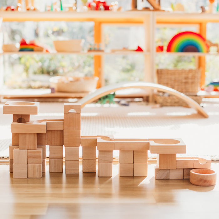Beautifully hand made open ended blocks that make interesting and engaging marble runs. Hours of fun!
