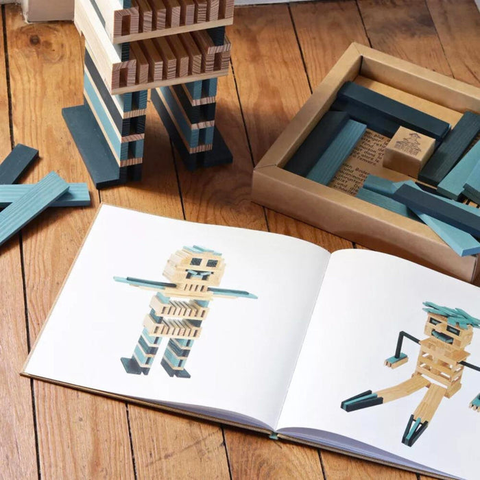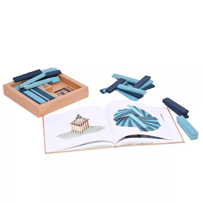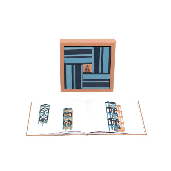 The KAPLA Colours & Book Set offers forty planks in two gorgeous shades of blue, plus a guidebook packed with stunning models to spark your creative building adventure.