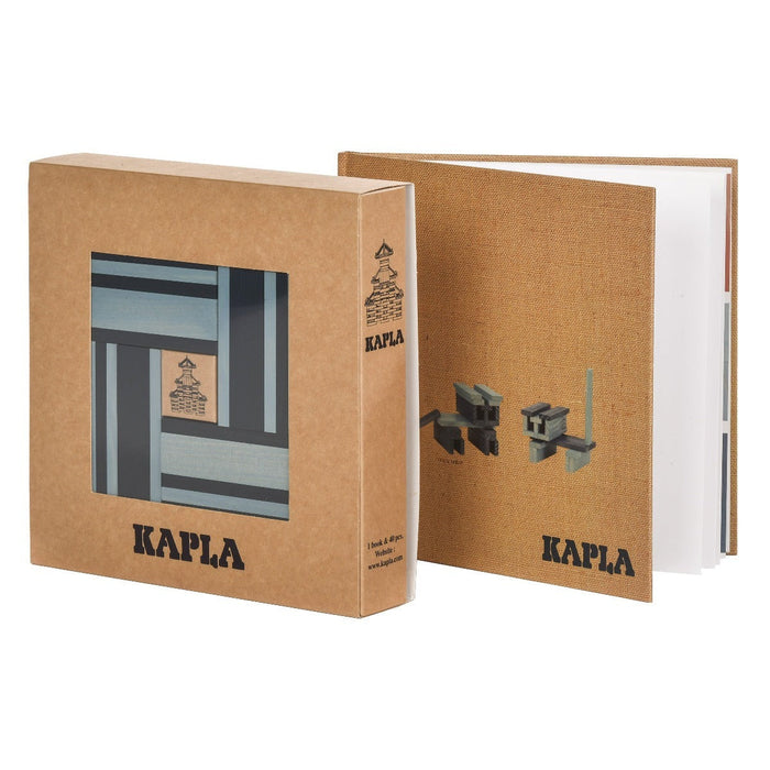 KAPLA Blocks Building Planks & Art Book - 40 Light Blue & Dark Blue Set - Box