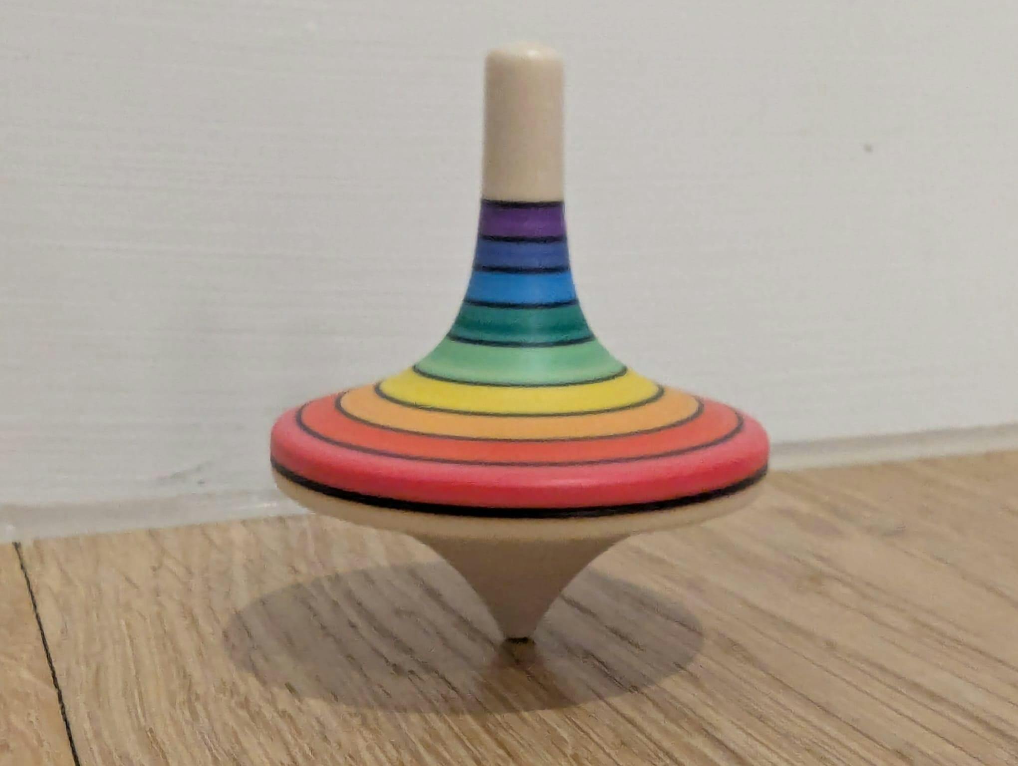 The Mader Large Rainbow Rallye spinning top is a must-have for youngsters and newbies seeking a smooth, balanced spin.