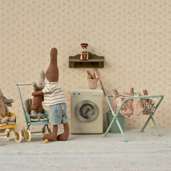 This vintage-style miniature drying rack, complete with tiny pegs, is perfect for Maileg friends who love to keep their laundry fresh and tidy.