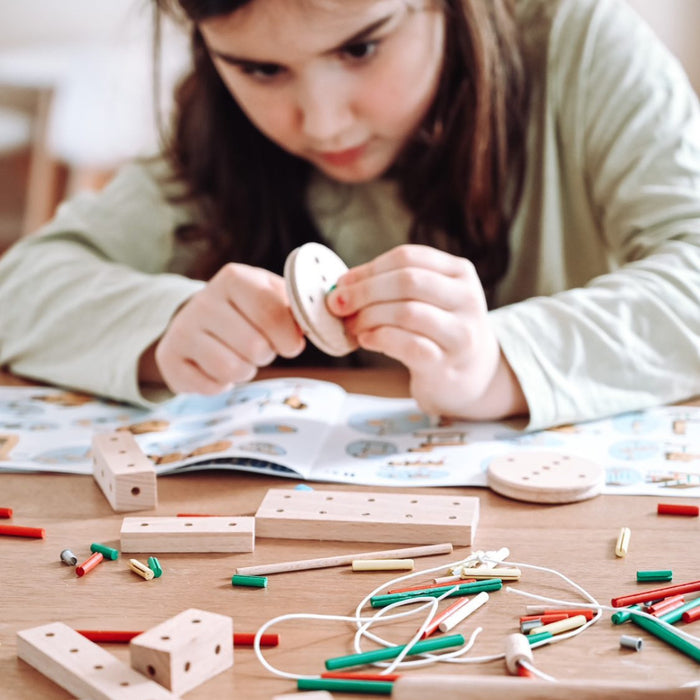 Developmentally appropriate and pedagogically devised, the difficulty levels of the models increase in logical steps so that skills are continuously developed. If children have not had any experience with tools, it makes sense for them to have some help during their first tries. After the first sense of achievement children turn into true Matador master builders!