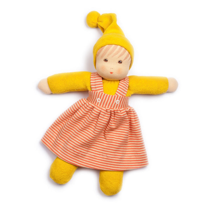 Gorgeous, soft, and cuddly, the Nanchen Waldorf Doll in Striped Dress is the ultimate bedtime and playtime buddy.