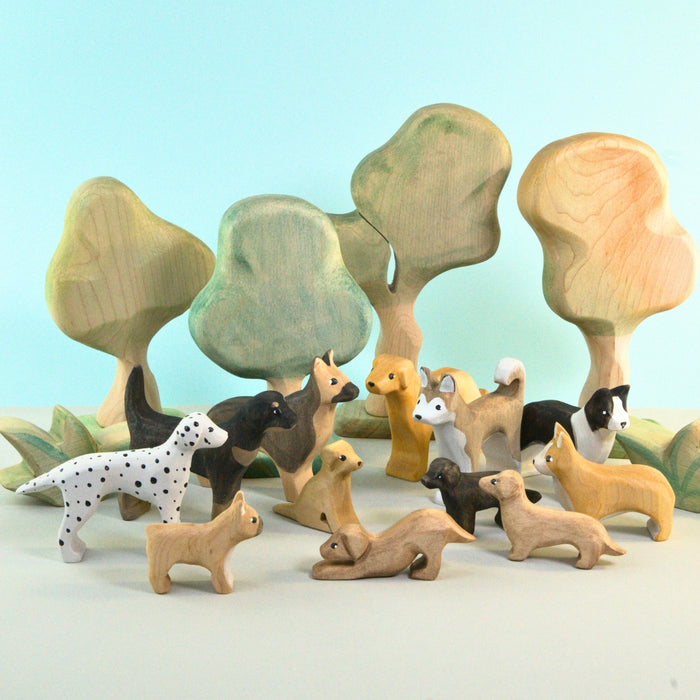 The wooden dog figurines pair perfectly with the rest of our NOM Handcrafted Animal Assortments.