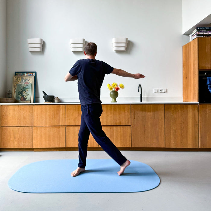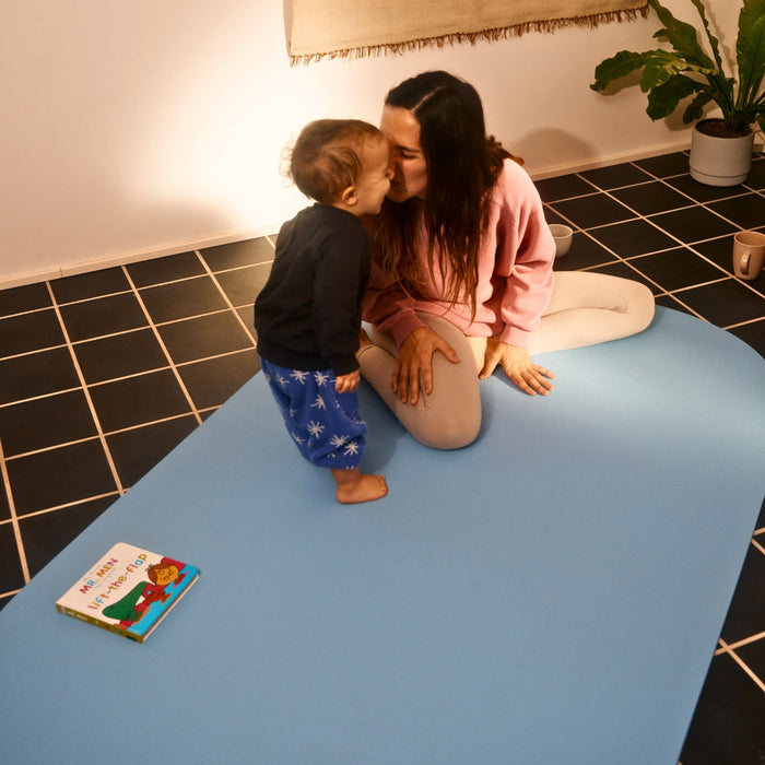 The Light Blue Stapelstein® Large Mat offers dual-textured, anti-slip surfaces—ideal for meditation, physical exercises, and kids' active play.