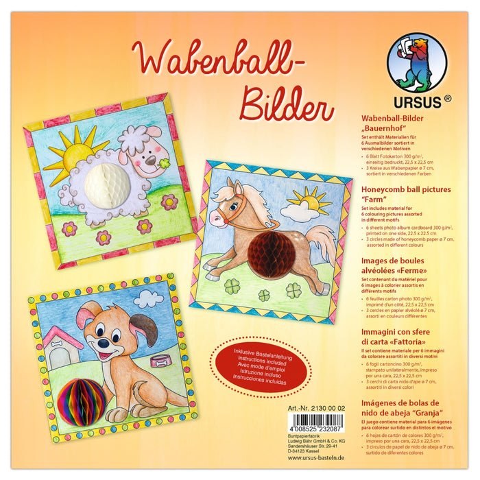 URSUS Colouring Pages with 3D Honeycomb Ball - 6 Sheets - Farm