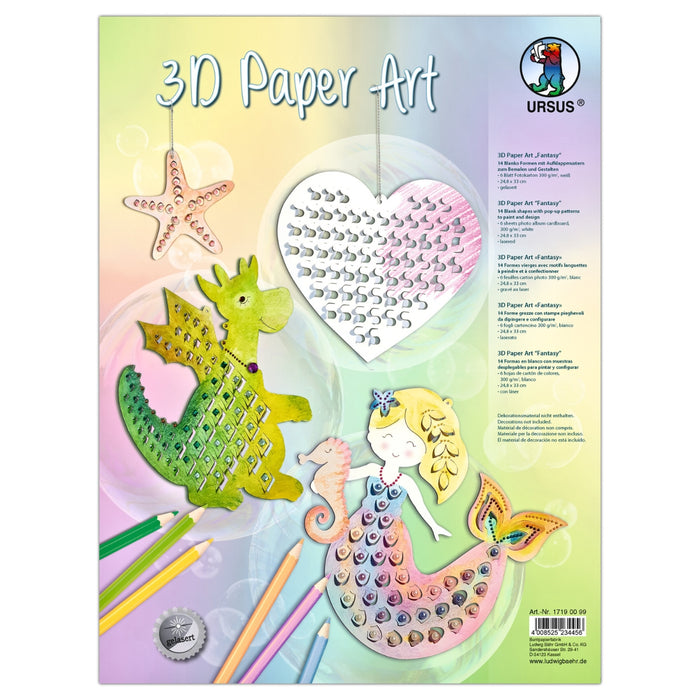 The URSUS DIY 3D Fantasy Paper Art Set includes six enchanting themes with fourteen unique forms to colour and bring to life. Perfect for sparking creativity in young children as they craft their own magical worlds through art and play.